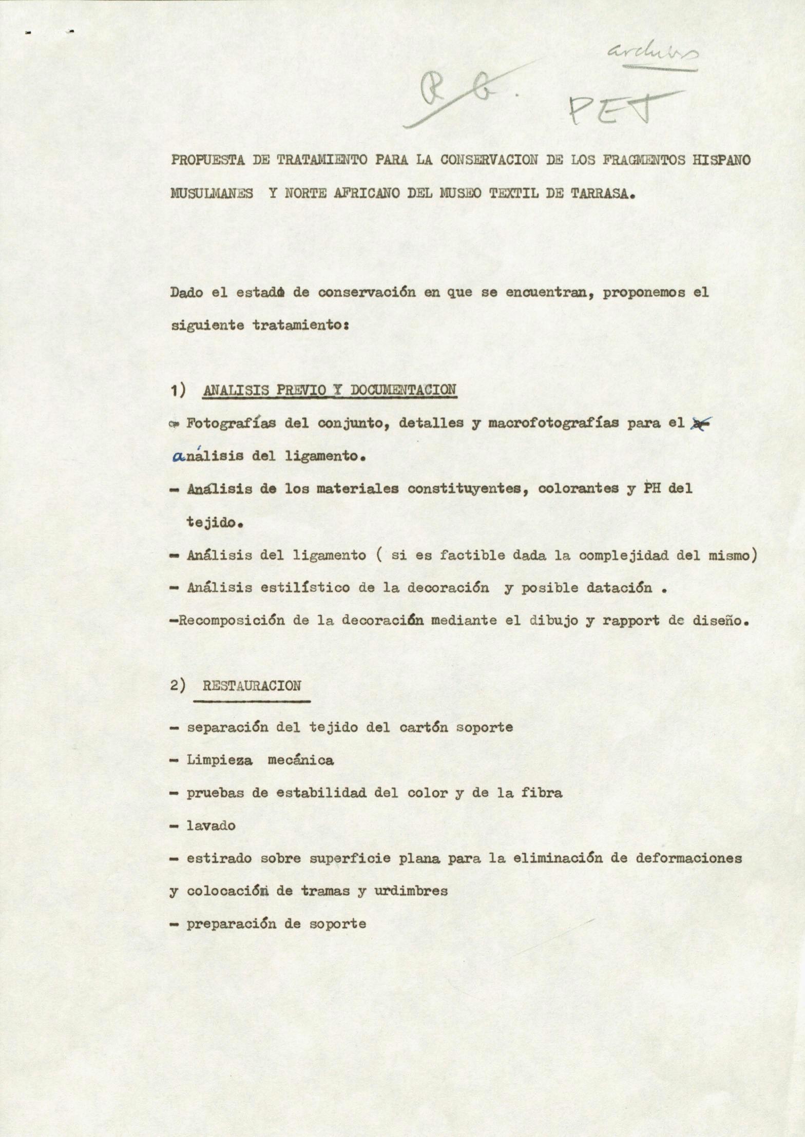 Restauración de cuatro fragmentos de tejido procedentes del Museo Textil de Tarrasa (Barcelona)