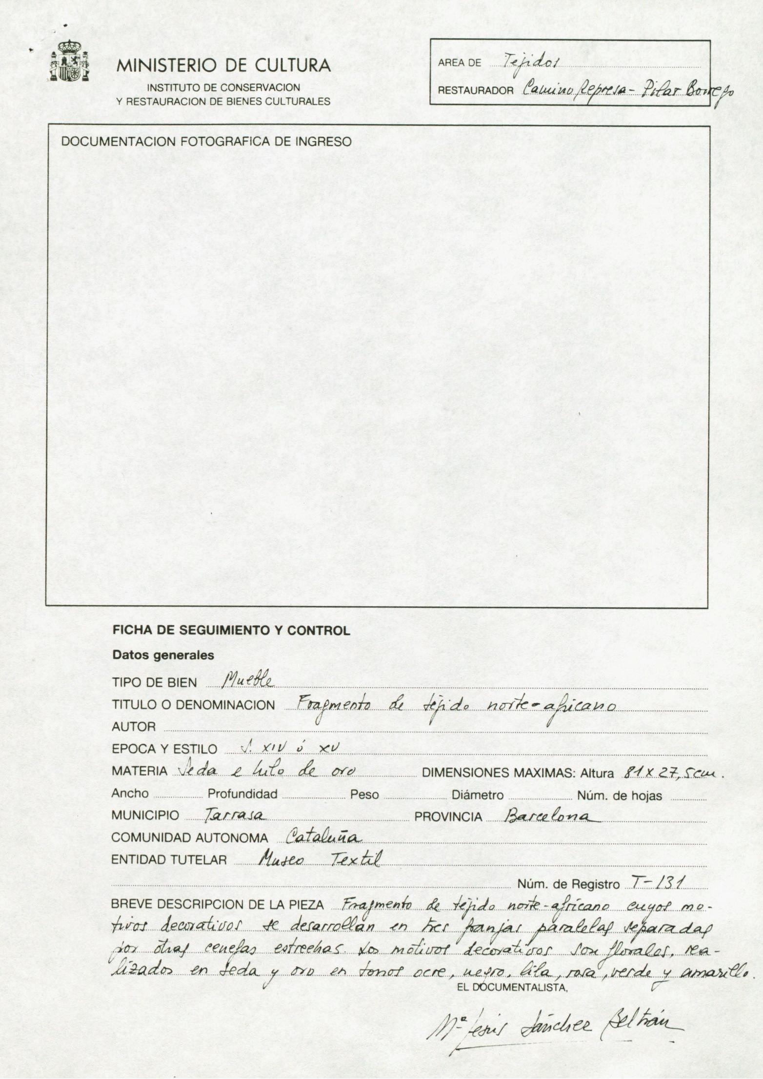 Restauración de un fragmento de tejido norte-africano procedente del Museo Textil de Tarrasa (Barcelona)