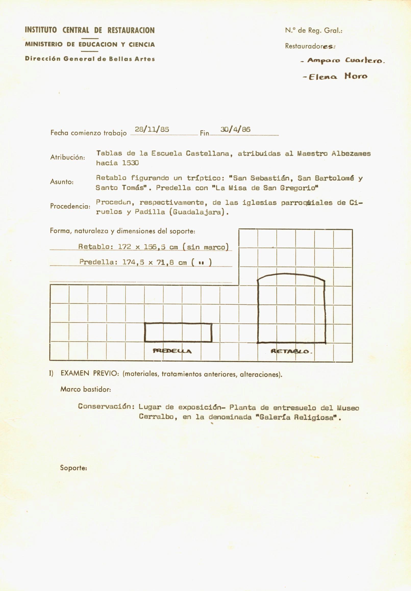 Restauración de la predela "San Roque, San Gregorio y San Agustín" de la Iglesia parroquial de Padilla (Guadalajara) procedente del Museo Cerralbo (Madrid)