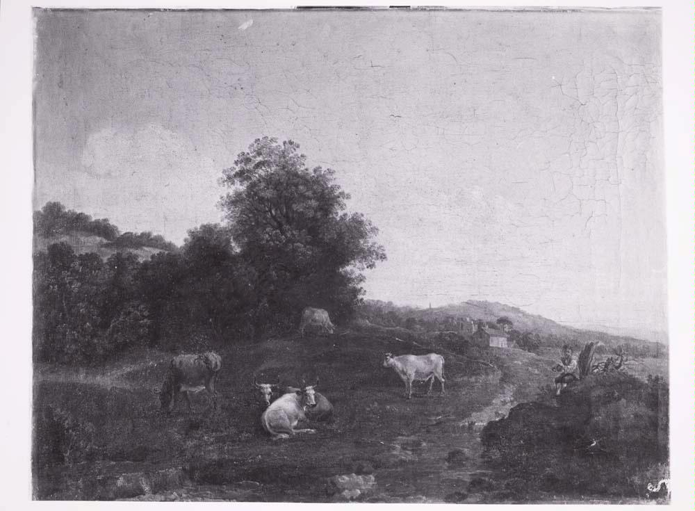 Restauración de un lienzo con paisaje de praderas de monte en las que pastan vacas con un vaquero, procedente del Museo Cerralbo (Madrid)