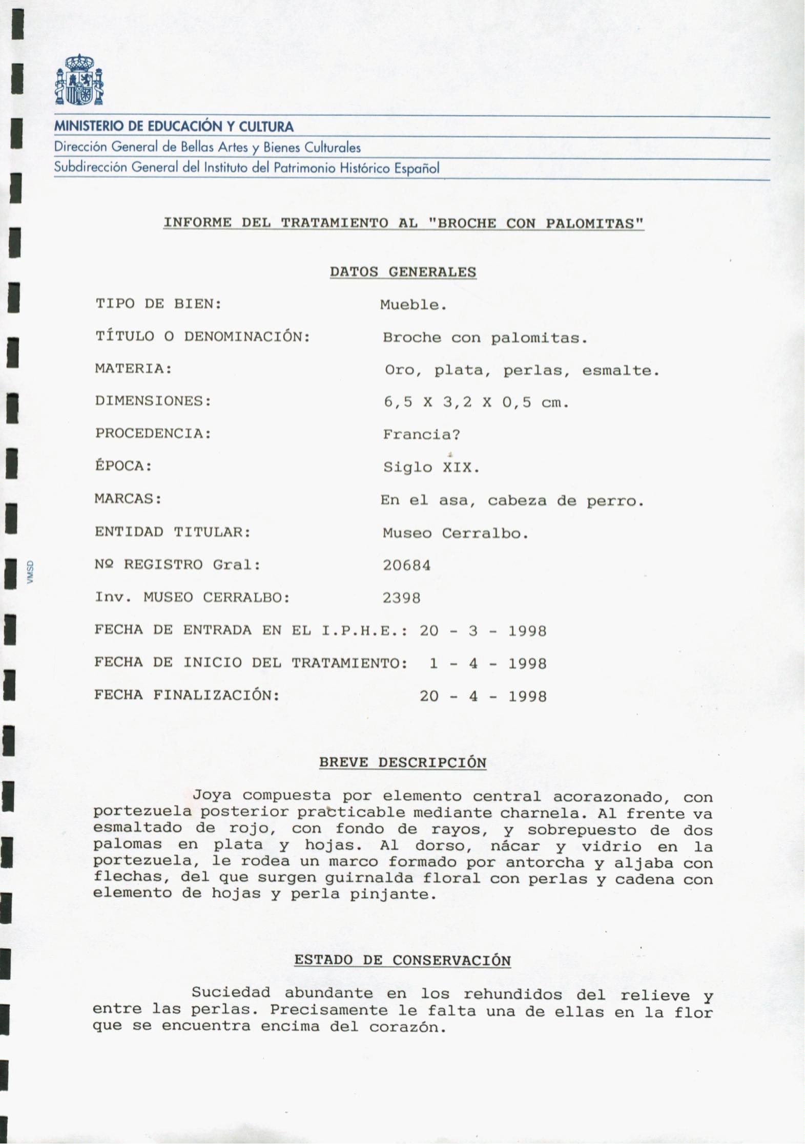 Restauración de un broche con palomitas, procedente del Museo Cerralbo (Madrid)