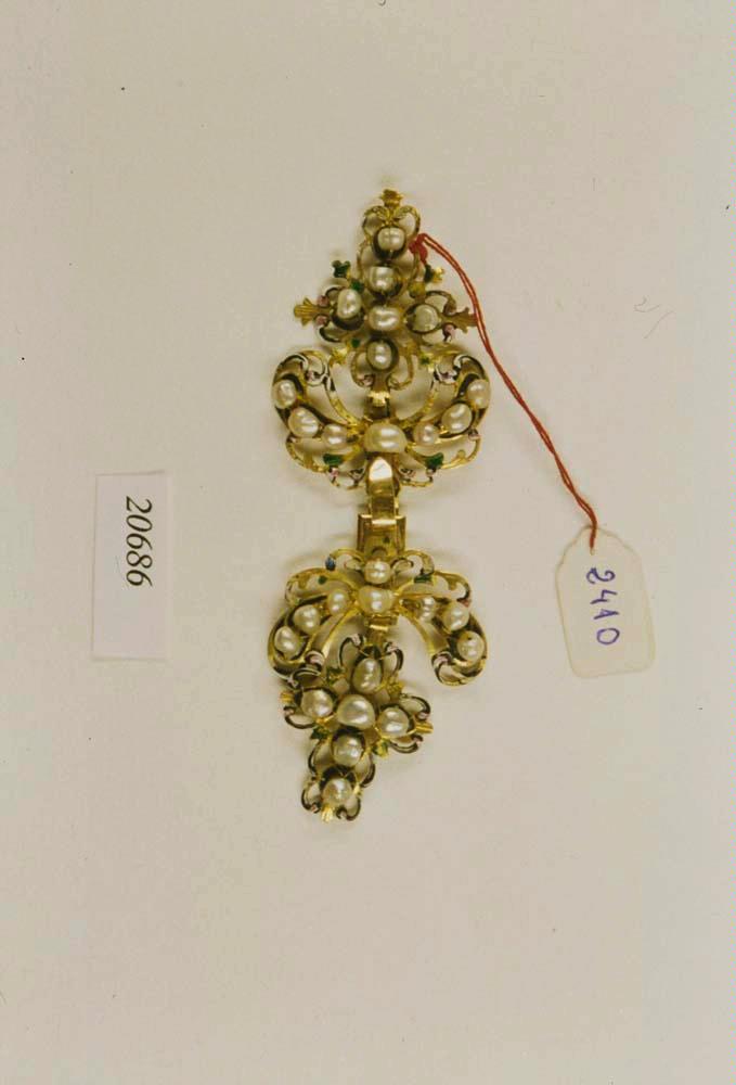 Restauración de un broche o remate de banda para capa realizado en oro esmaltado y aljófar, procedente del Museo Cerralbo (Madrid)