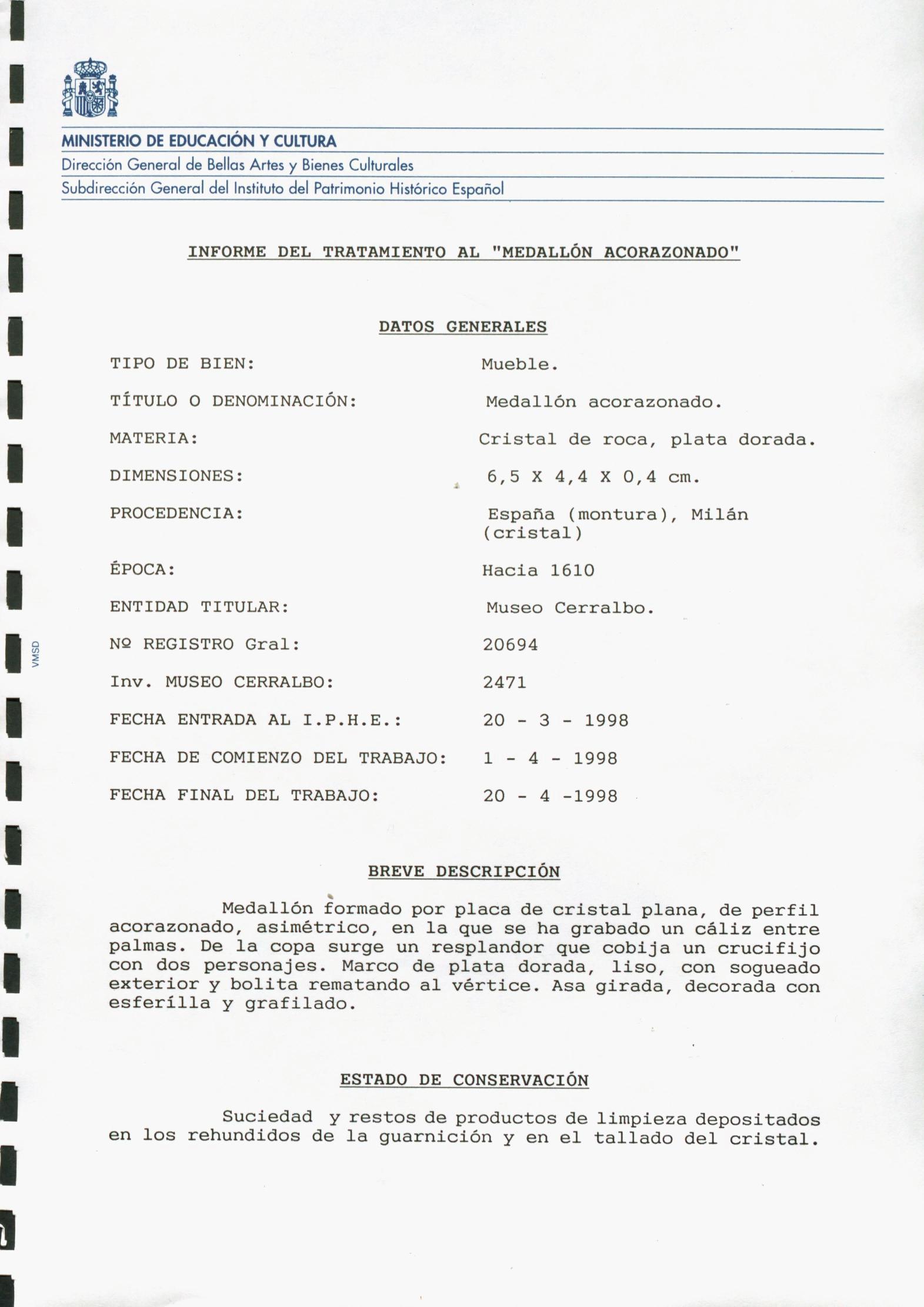 Restauración de un medallón de cristal de roca y plata dorada en forma de corazón, procedente del Museo Cerralbo (Madrid)