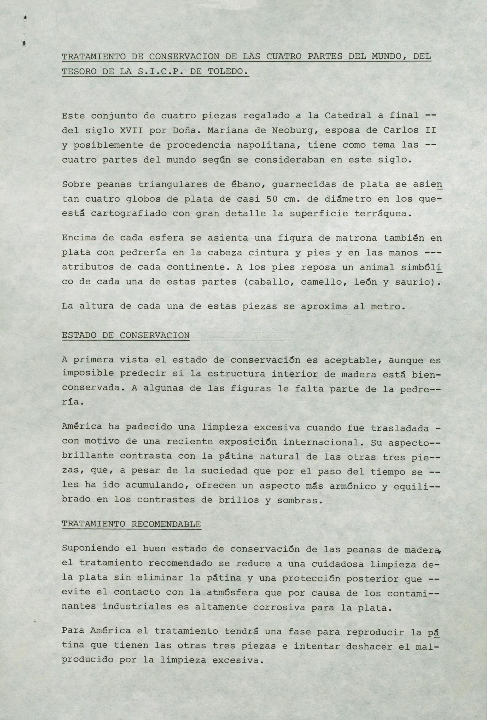 Restauración in situ de un conjunto de globos terráqueos de plata "Las cuatro partes del mundo" de la Catedral de Toledo