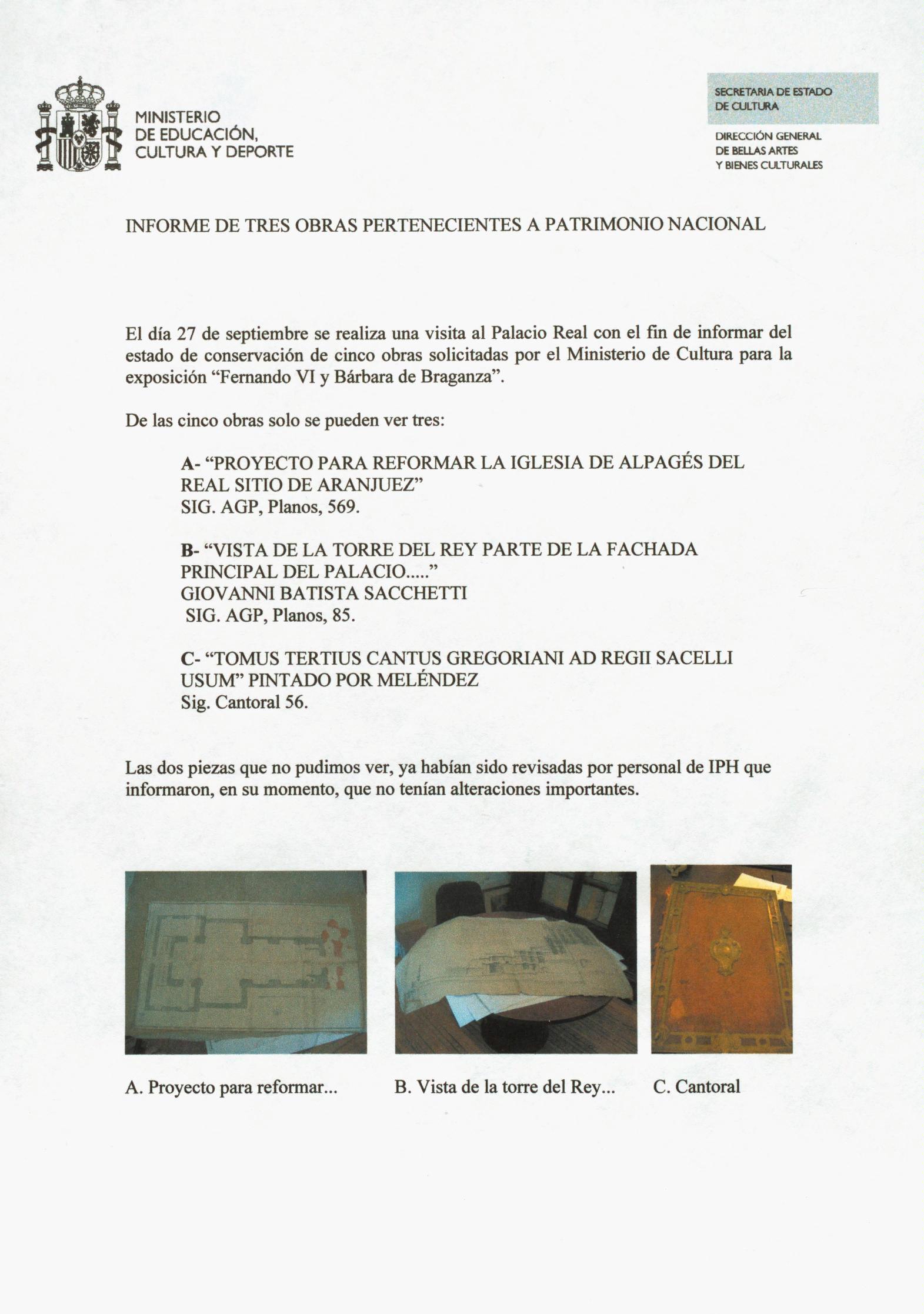 Restauración de un plano, un proyecto y un cantoral del Real Sitio de Aranjuez, propiedad de Patrimonio Nacional (Madrid)