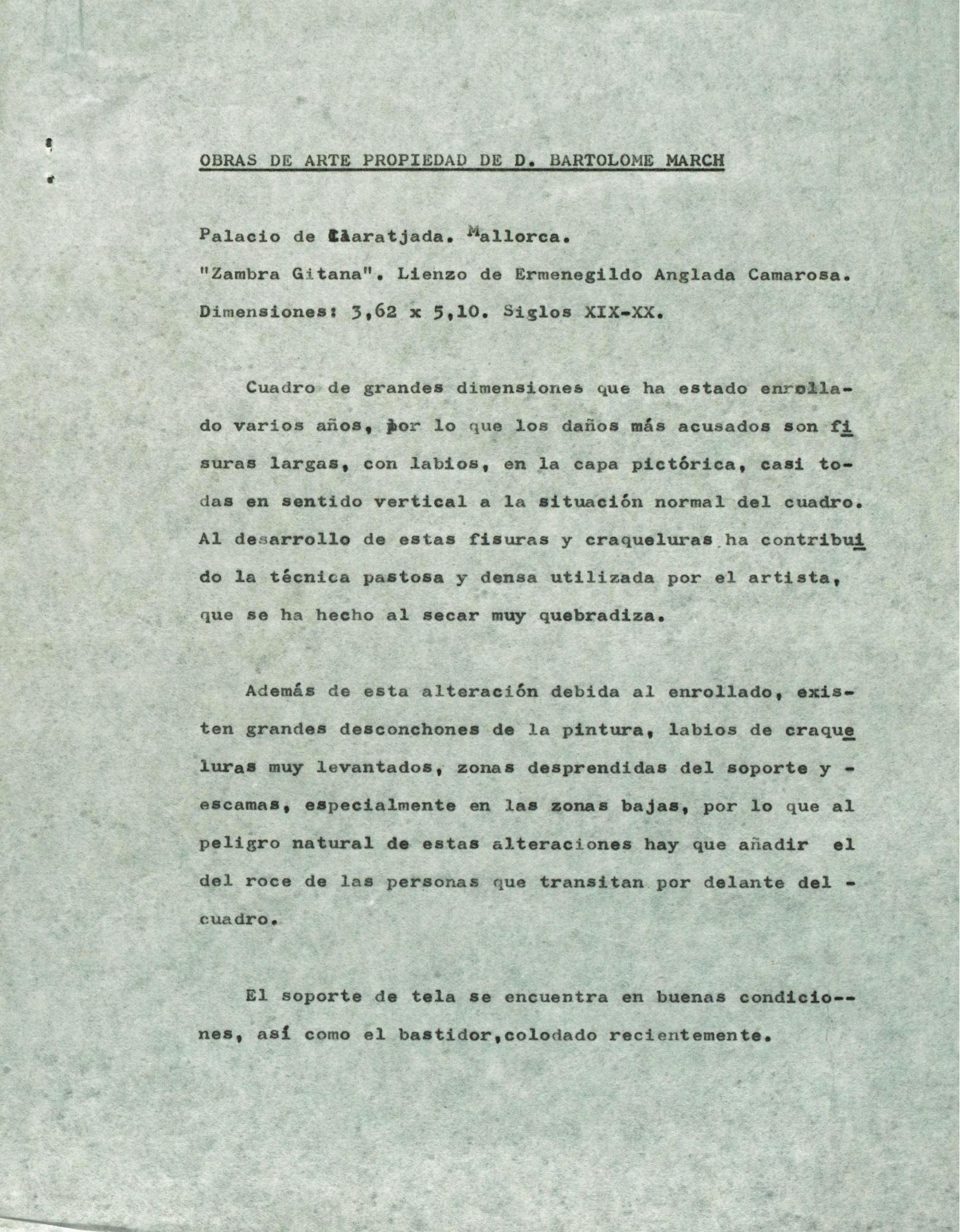 Restauración las pinturas "Zambra gitana" y "La Asunción", de Hermenegildo Anglada, procedentes de la colección de Bartolomé March (Madrid)