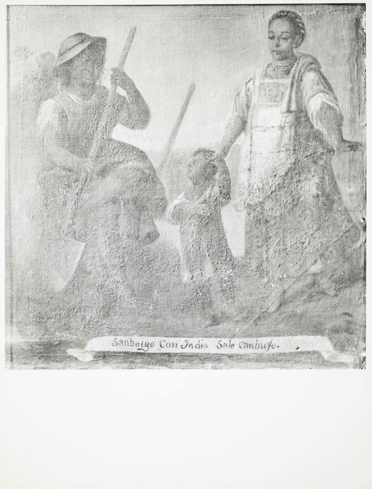 Fotografía de la restauración del lienzo "Sambaigo con India sale Cambujo", de Luis Berrueco, procedente de la colección de Bartolomé March (Madrid)