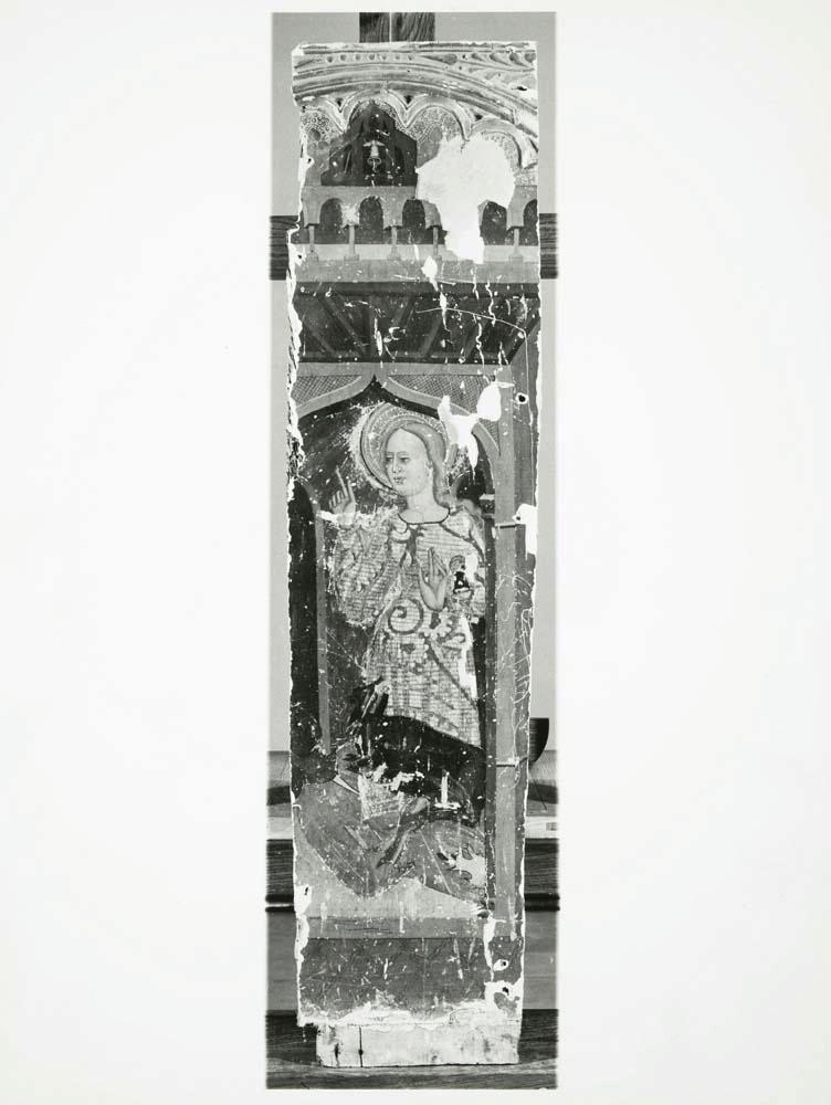 Fotografías de la restauración de la tabla "Milagro de Santa Marina", perteneciente al retablo mayor de la Iglesia parroquial de Santa Columba de Villamediana (Palencia)