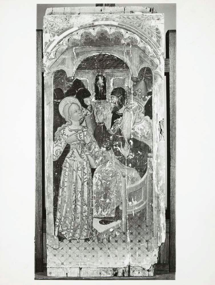 Restauración de la tabla "Juicio de Santa Marina", perteneciente al retablo mayor de la Iglesia parroquial de Santa Columba de Villamediana (Palencia)