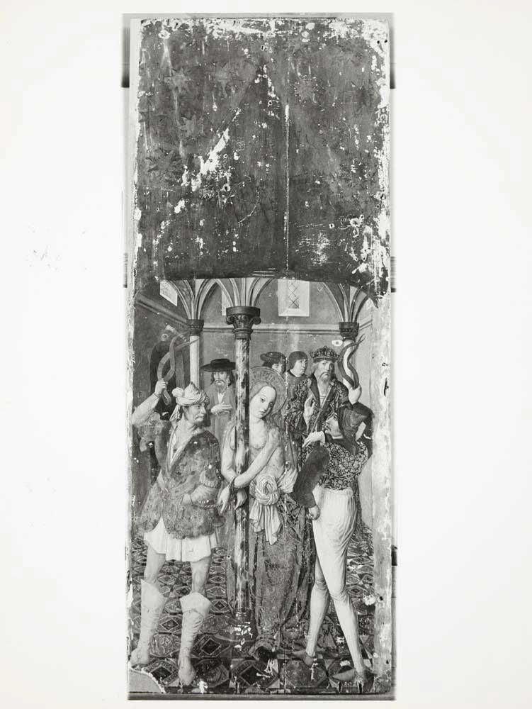 Restauración de la tabla "Flagelación Santa Catalina", perteneciente al retablo mayor de la Iglesia parroquial de Santa Columba de Villamediana (Palencia)