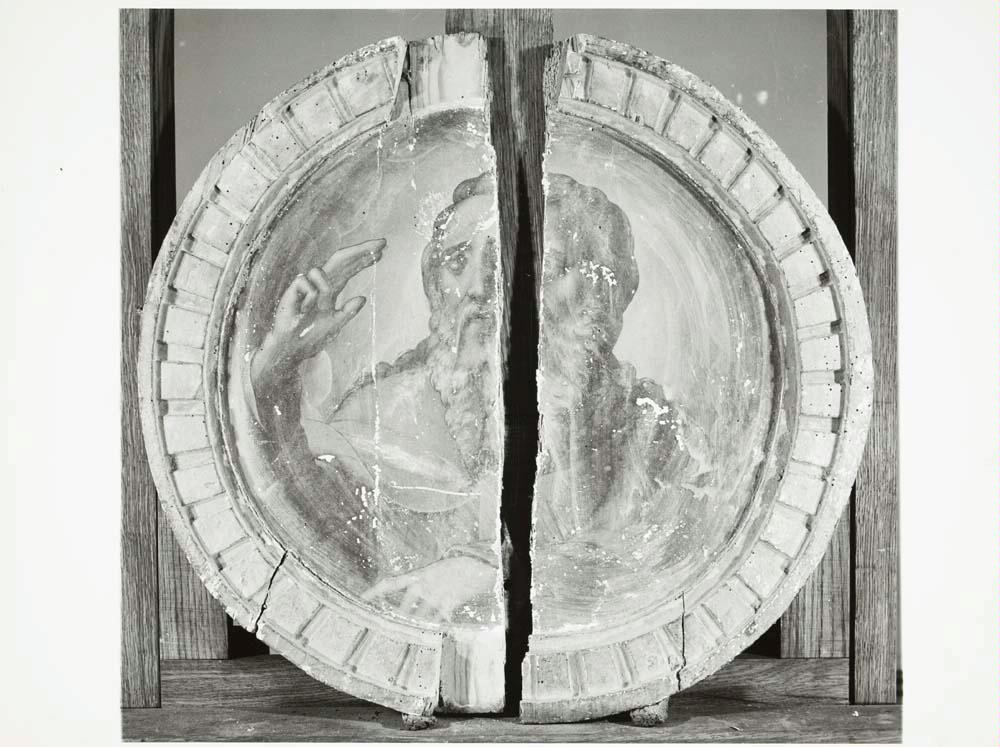 Fotografías de la restauración de la tabla "Dios Padre", perteneciente al retablo mayor de la Iglesia parroquial de Santa Columba de Villamediana (Palencia)