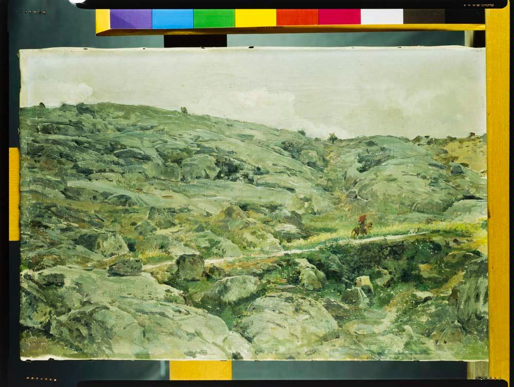 Restauración del lienzo "Paisaje de montaña", de Emilio Sala, procedente de la Universidad Complutense (Madrid)