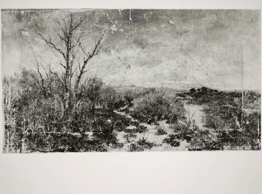 Restauración del lienzo "Paisaje", atribuido a Feijoo de Miguel, procedente del Ministerio de Cultura (Madrid)