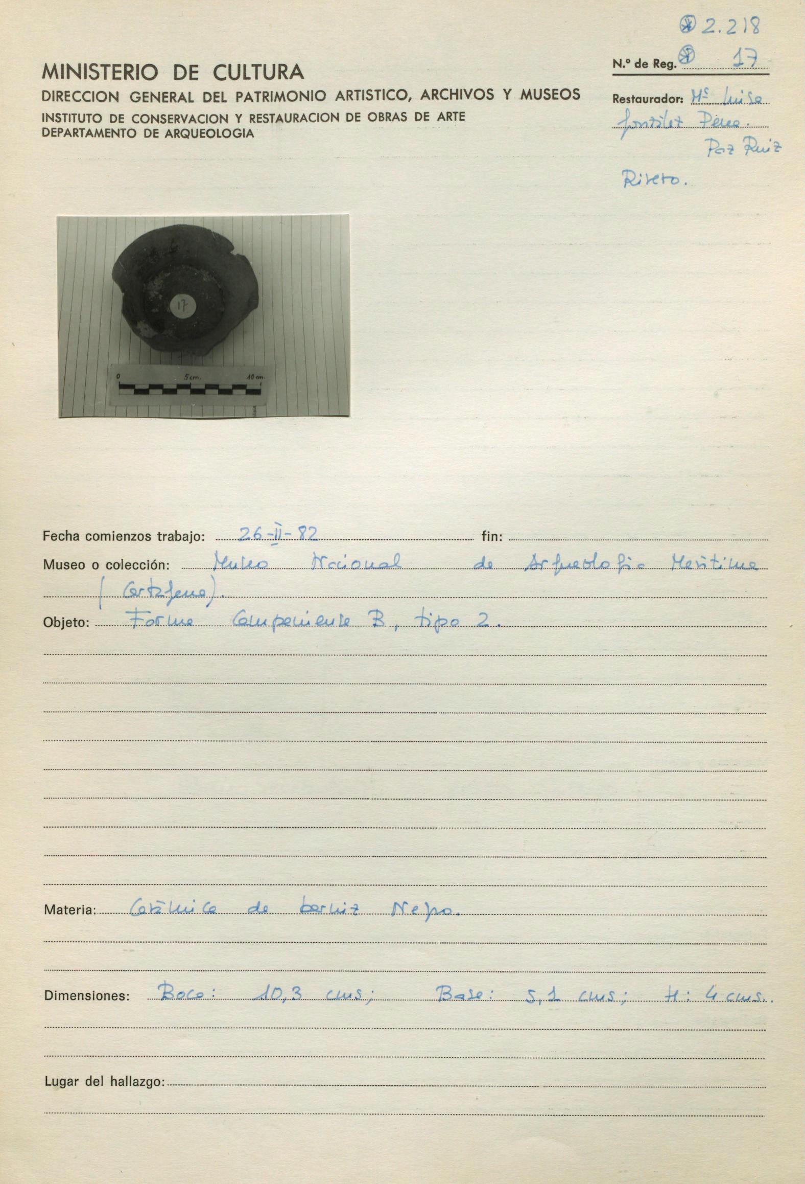 Restauración in situ de setenta y siete piezas arqueológicas pertenecientes al Museo y Centro Nacional de Investigaciones Arqueológicas Submarinas de Cartagena (Murcia)