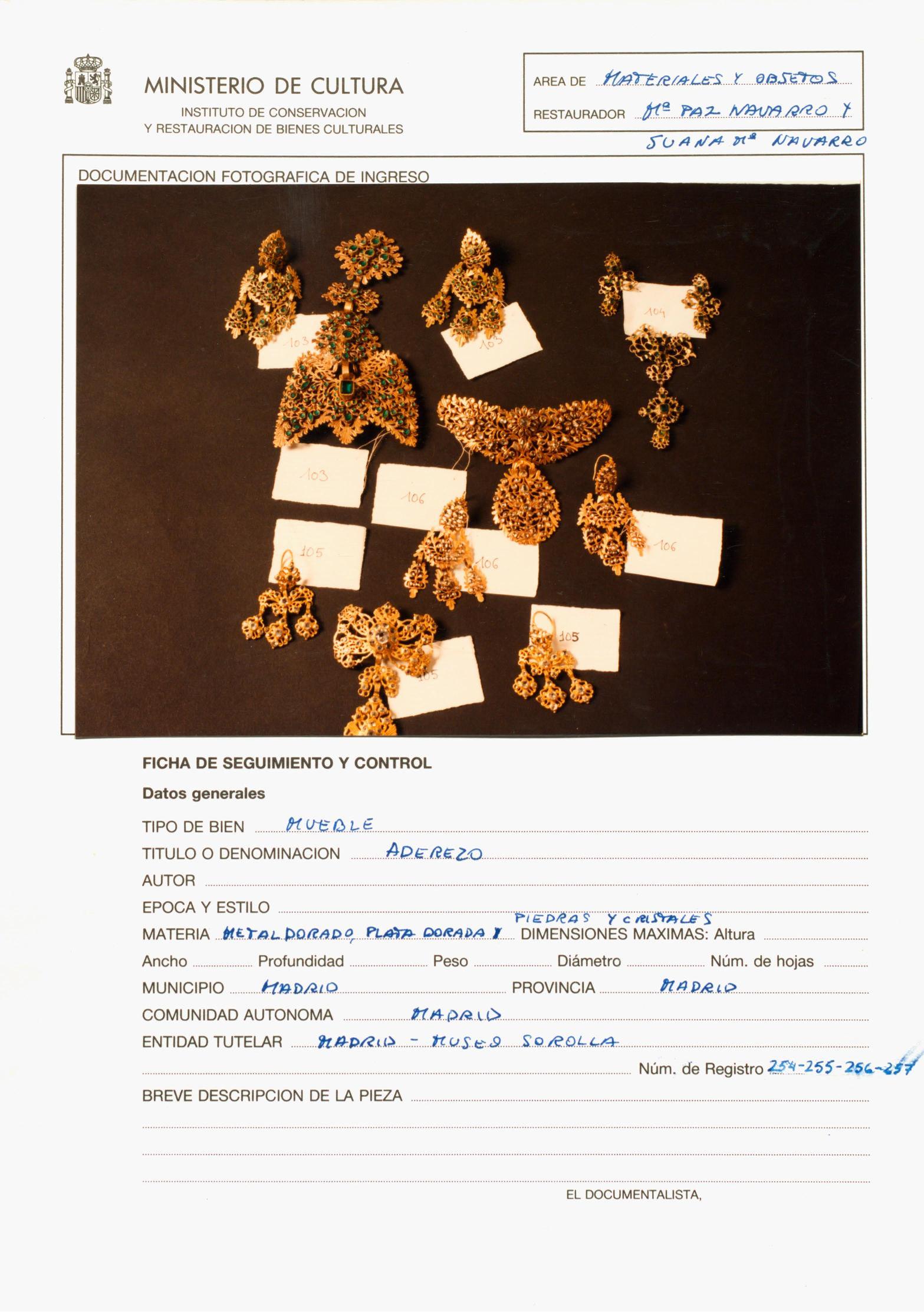 Restauración de aderezos, broches y pendientes, procedentes de la colección de joyería popular del Museo Sorolla (Madrid)