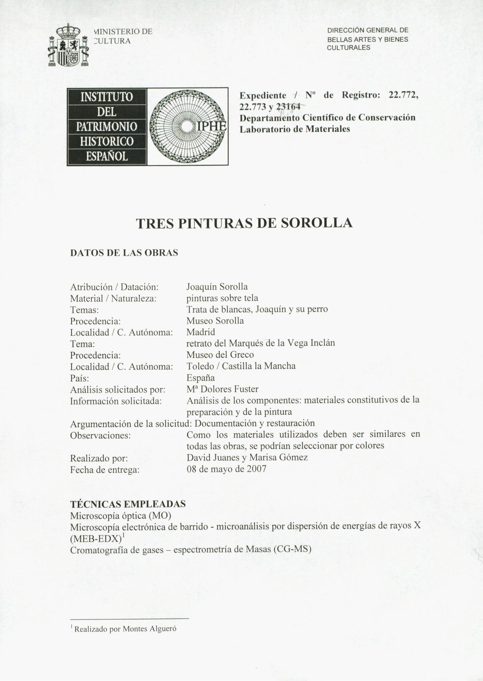 Restauración de tres lienzos de Joaquín Sorolla, procedentes del Museo Sorolla (Madrid) y Museo del Greco (Toledo)