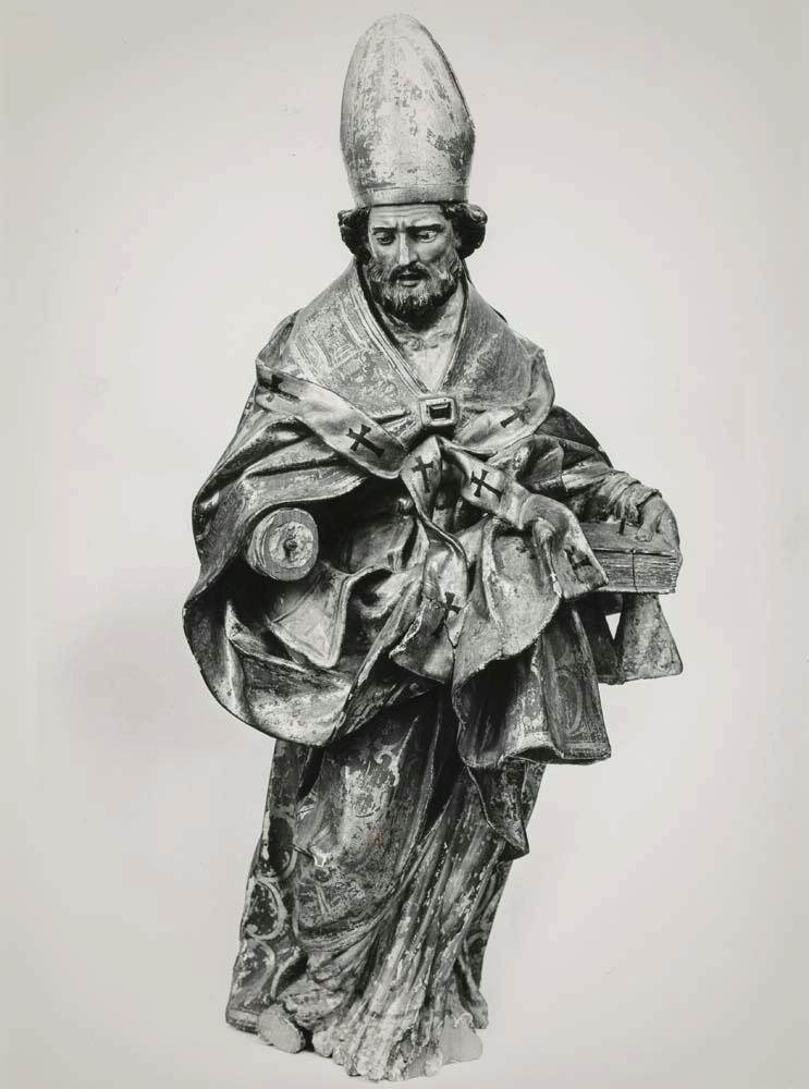 Fotografías de la restauración de una talla de San Blas, procedente de la Iglesia parroquial de San Andrés de San Andrés de Rascafría (Madrid)