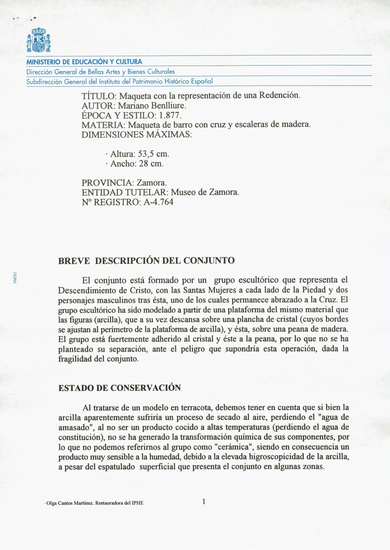 Restauración de una maqueta con la representación de una Redención, de Mariano Benlliure, procedente del Museo Provincial de Zamora