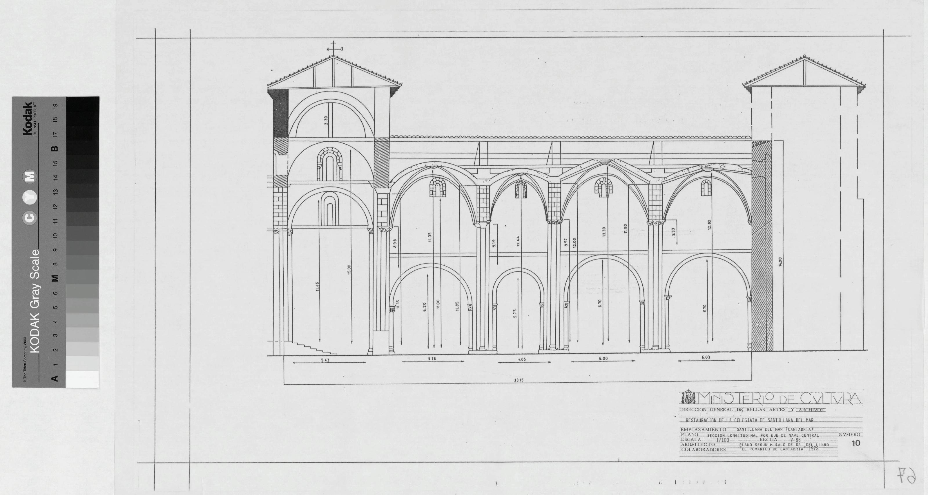 COLEGIATA DE SANTILLANA DEL MAR: SECCION LONGITUDINAL POR EJE DE NAVE CENTRAL