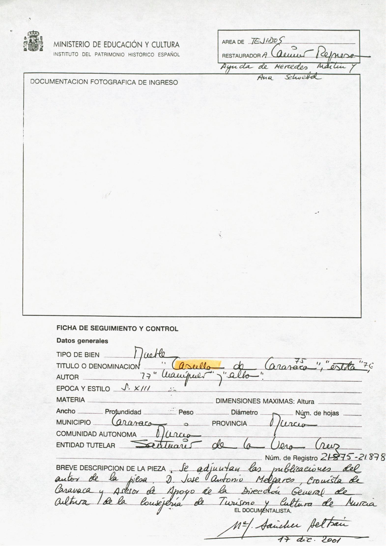 Restauración del Manípulo de Chirinos, procedente del Santuario de la Vera Cruz de Caravaca (Murcia)