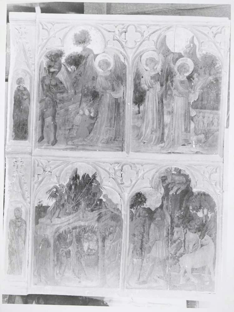 Restauración de tablas con cuatro escenas de la vida del Arcángel San Miguel y dos evangelistas o profetas enmarcados bajo pináculos, atribuidas al Maestro de Puxmarín, procedentes del retablo de San Miguel de la Catedral de Murcia