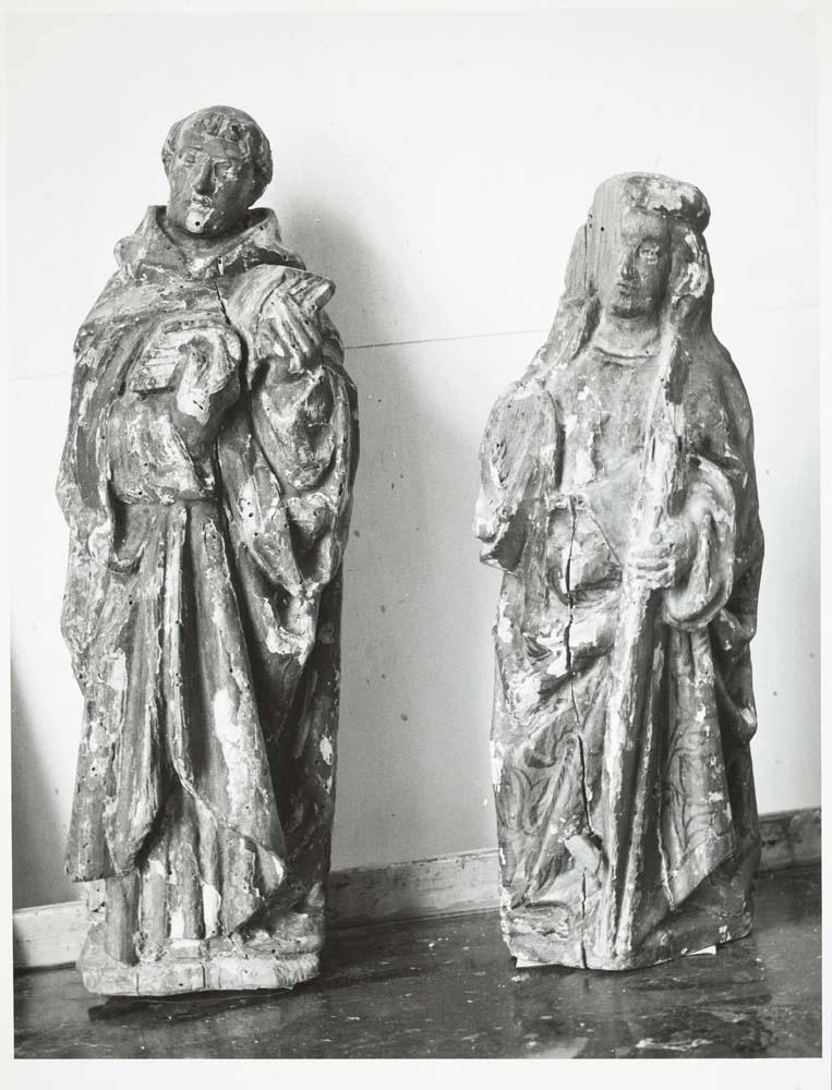 Fotografías de la restauración de dos tallas representando santos, procedentes del retablo de la Iglesia parroquial de Nuestra Señora de las Nieves de Alanís de la Sierra (Sevilla)