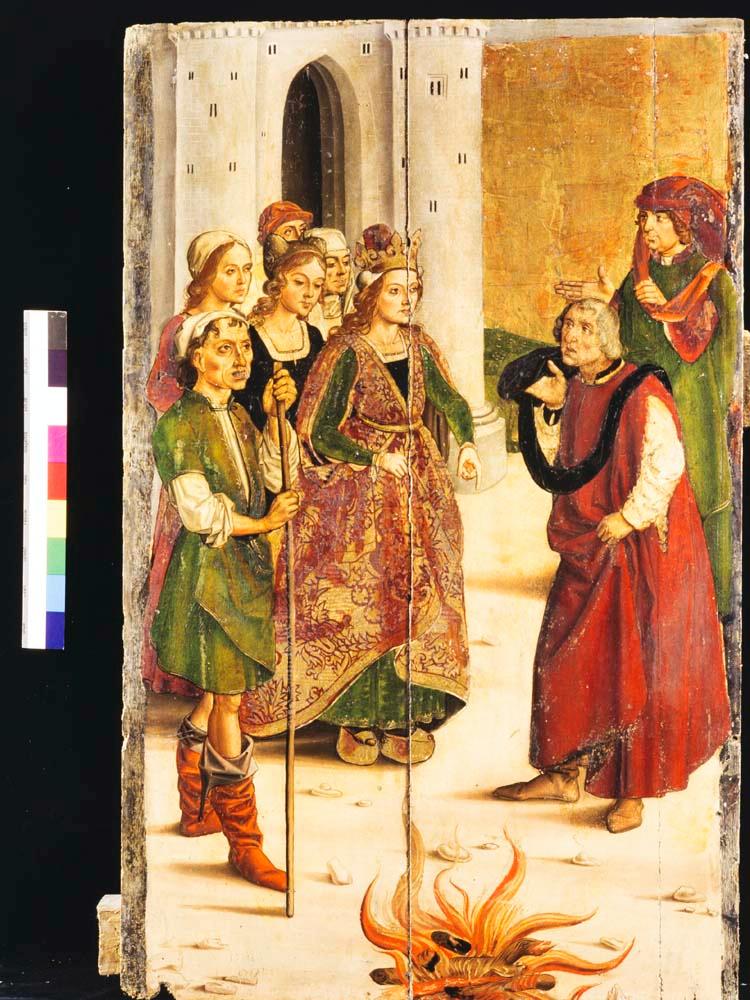 Restauración de la tabla "Súplica del hebreo", del retablo de la Invención de la Santa Cruz o Santa Marina, de Pedro Berruguete, procedente del Museo parroquial de la Iglesia de Santa Eulalia de Paredes de la Nava (Palencia)