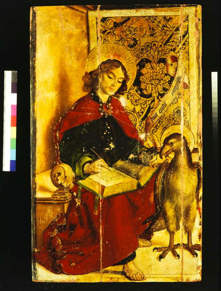 Restauración de la tabla "San Juan", del retablo de la Invención de la Santa Cruz o Santa Marina, de Pedro Berruguete, procedente del Museo parroquial de la Iglesia de Santa Eulalia de Paredes de la Nava (Palencia)