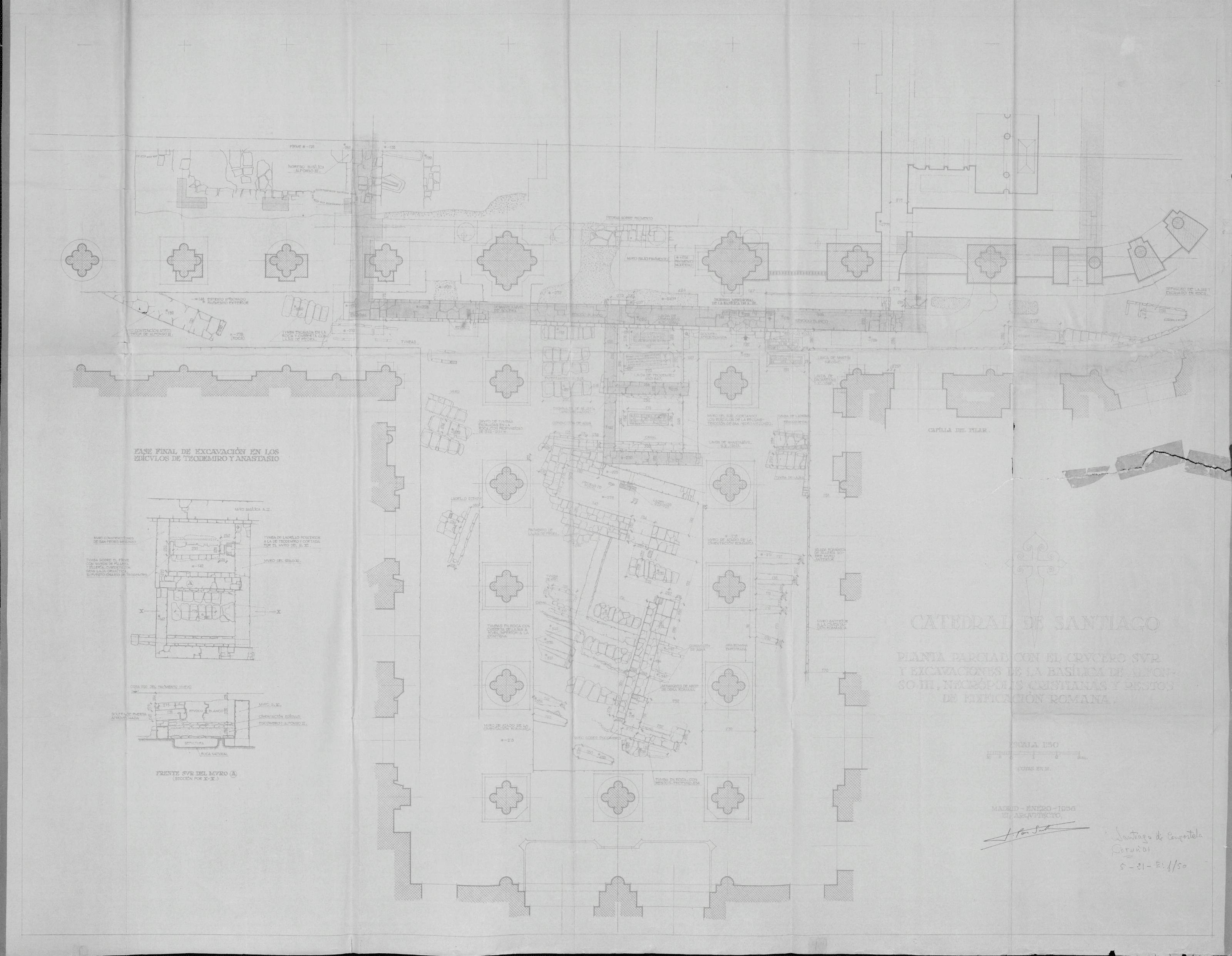 Catedral -Santiago de Compostela - (Coruña): Planta Parcial con el Crucero Sur
