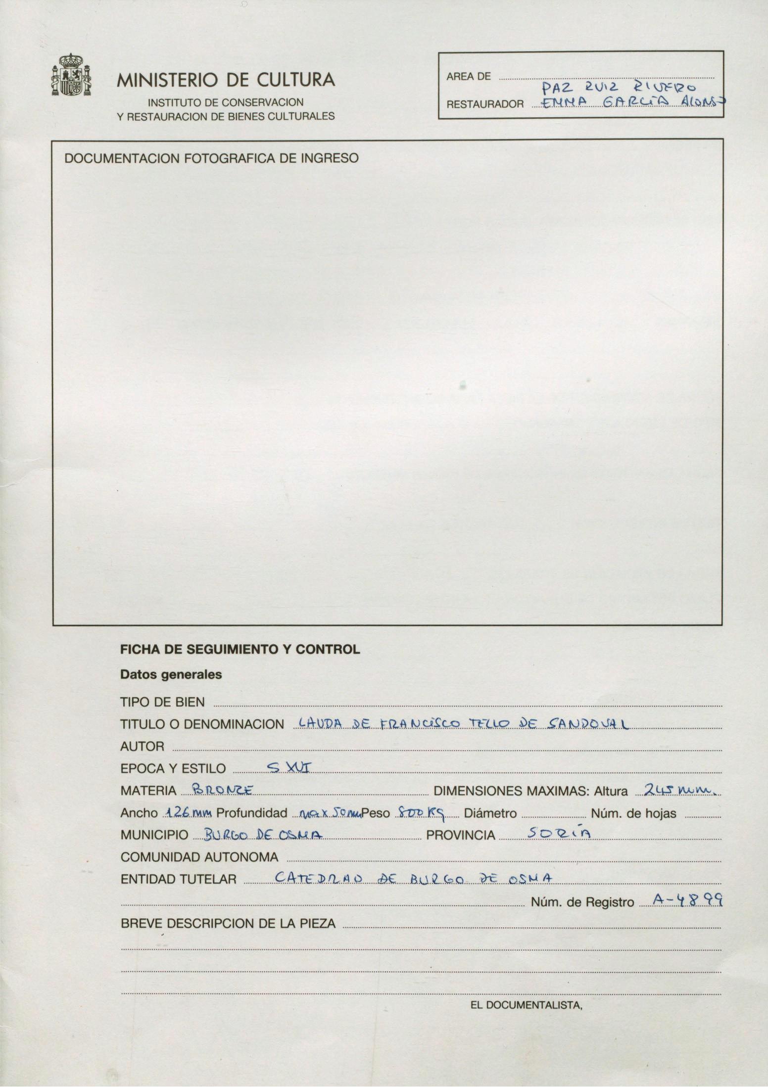 Restauración de una lauda del obispo Francisco Tello de Sandoval del siglo XVI, procedente de la Catedral de Burgo de Osma (Soria)