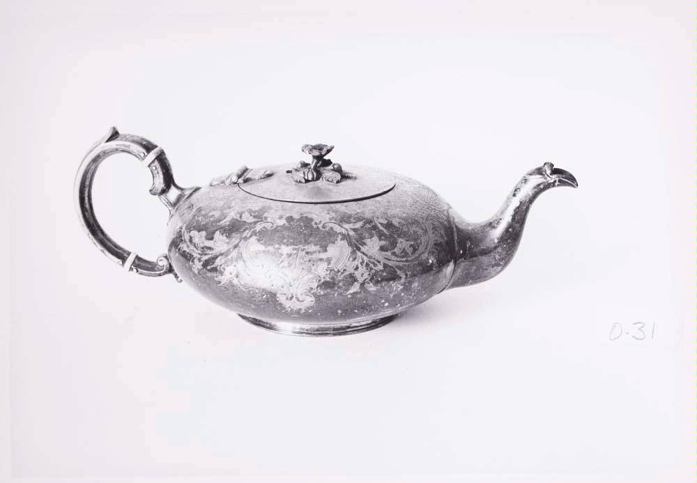 Restauración de una tetera de alpaca plateada con decoración floral y de la marca "Roberst & Platis" procedente del Servicio Nacional de Recuperación Artística (Madrid)