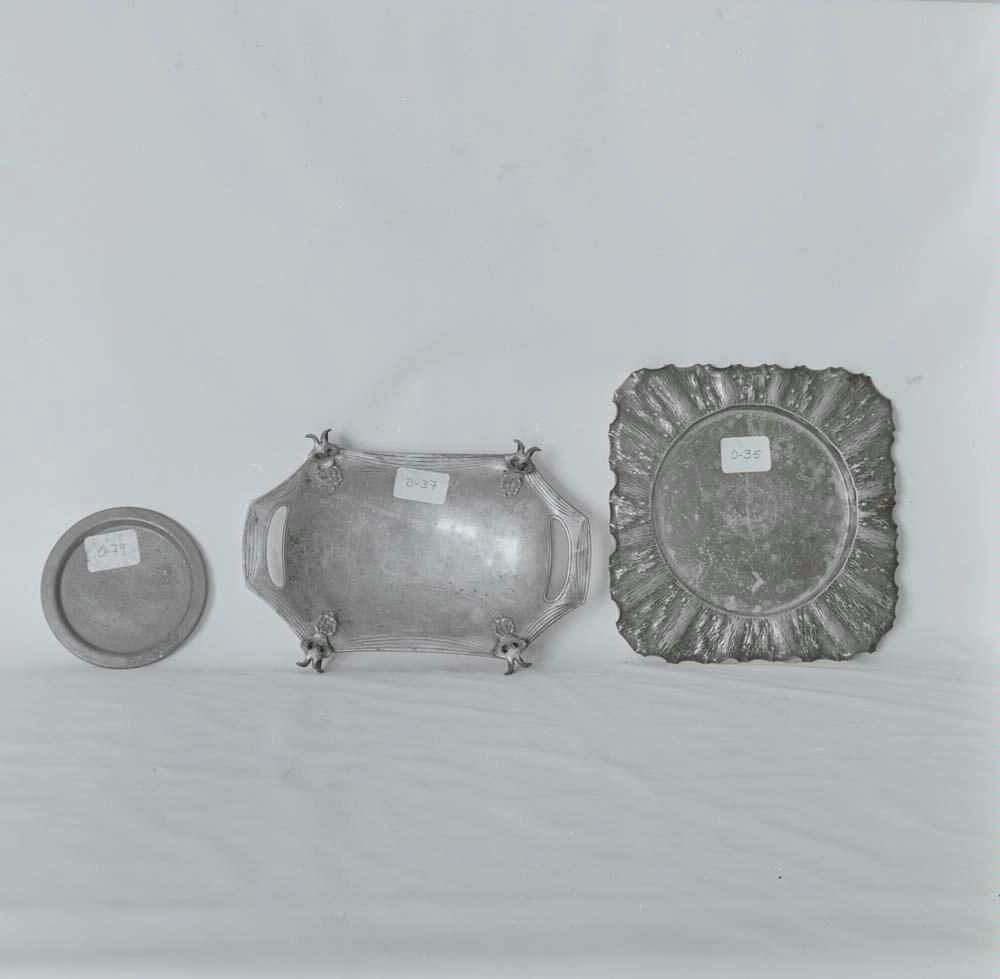 Restauración de una bandeja, de latón plateado, con cuatro patas procedente del Servicio Nacional de Recuperación Artística (Madrid)