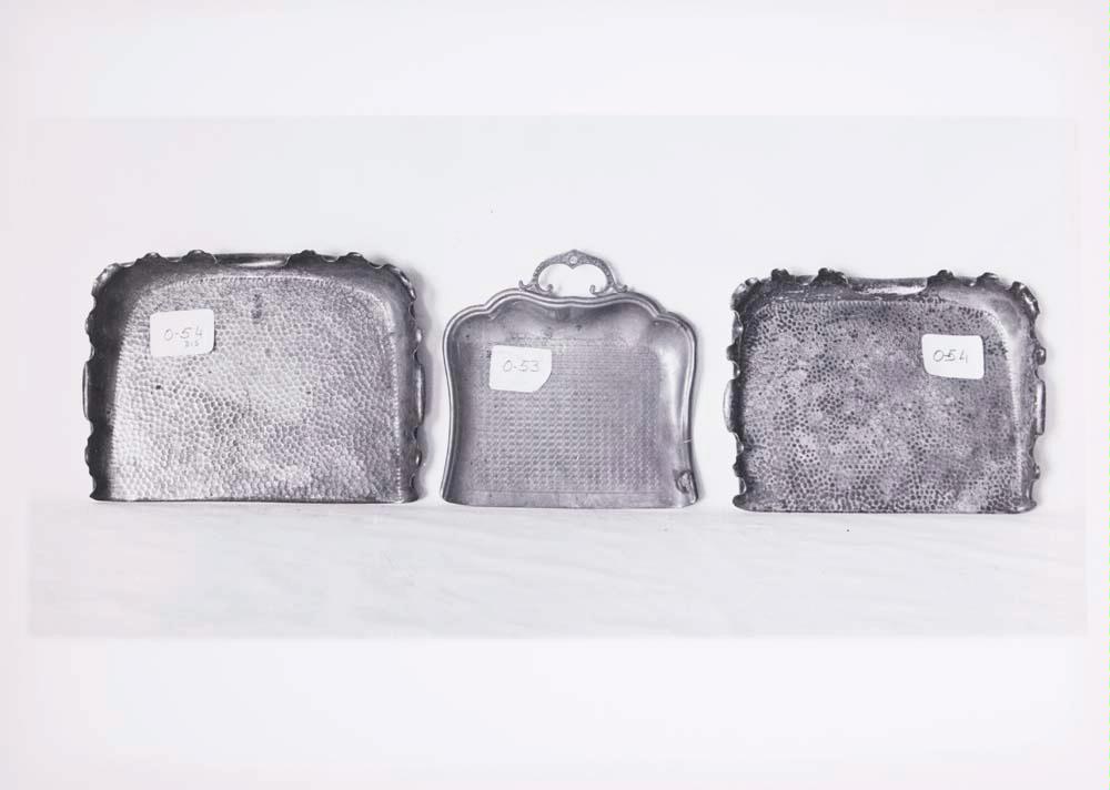 Restauración de un recogemigas martelé de la marca "Gethen" procedente del Servicio Nacional de Recuperación Artística (Madrid)