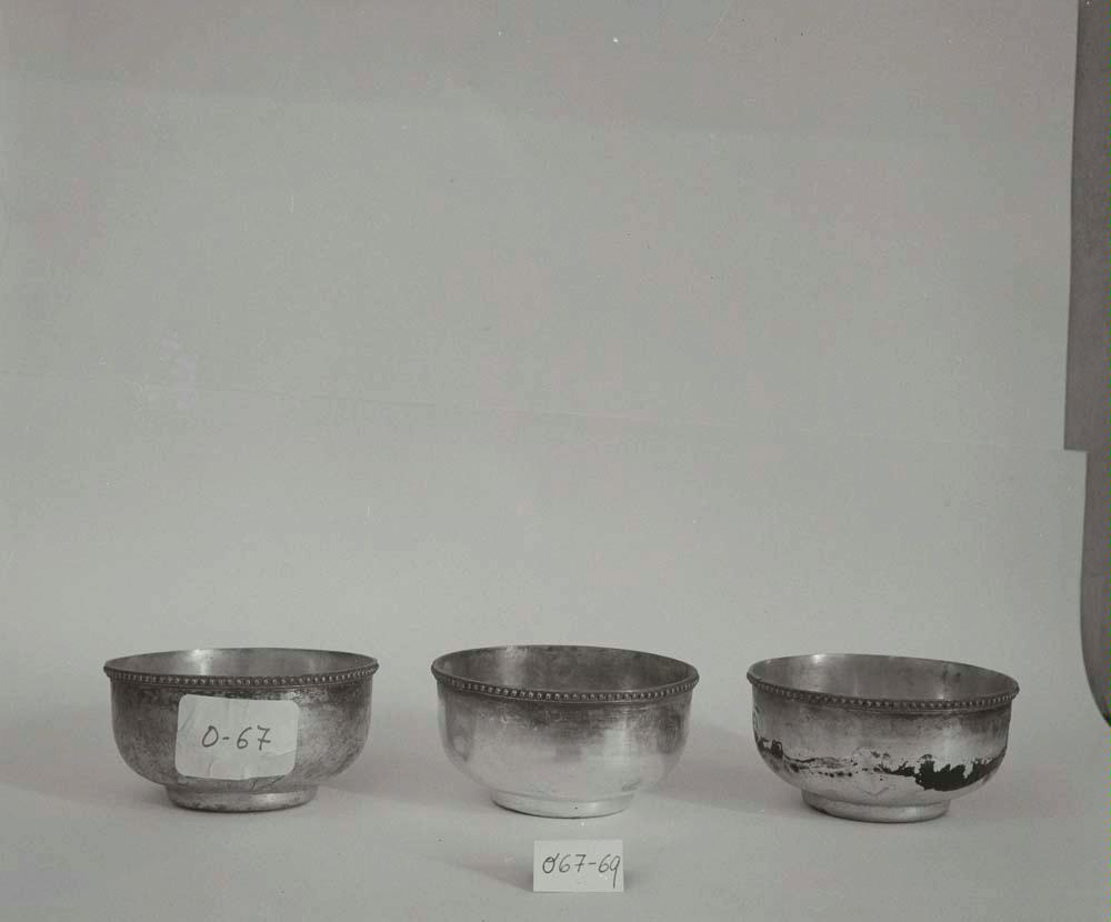 Restauración de un lavafrutas de latón plateado, con decoración de perlado en el borde superior externo, procedente del Servicio Nacional de Recuperación Artística (Madrid)