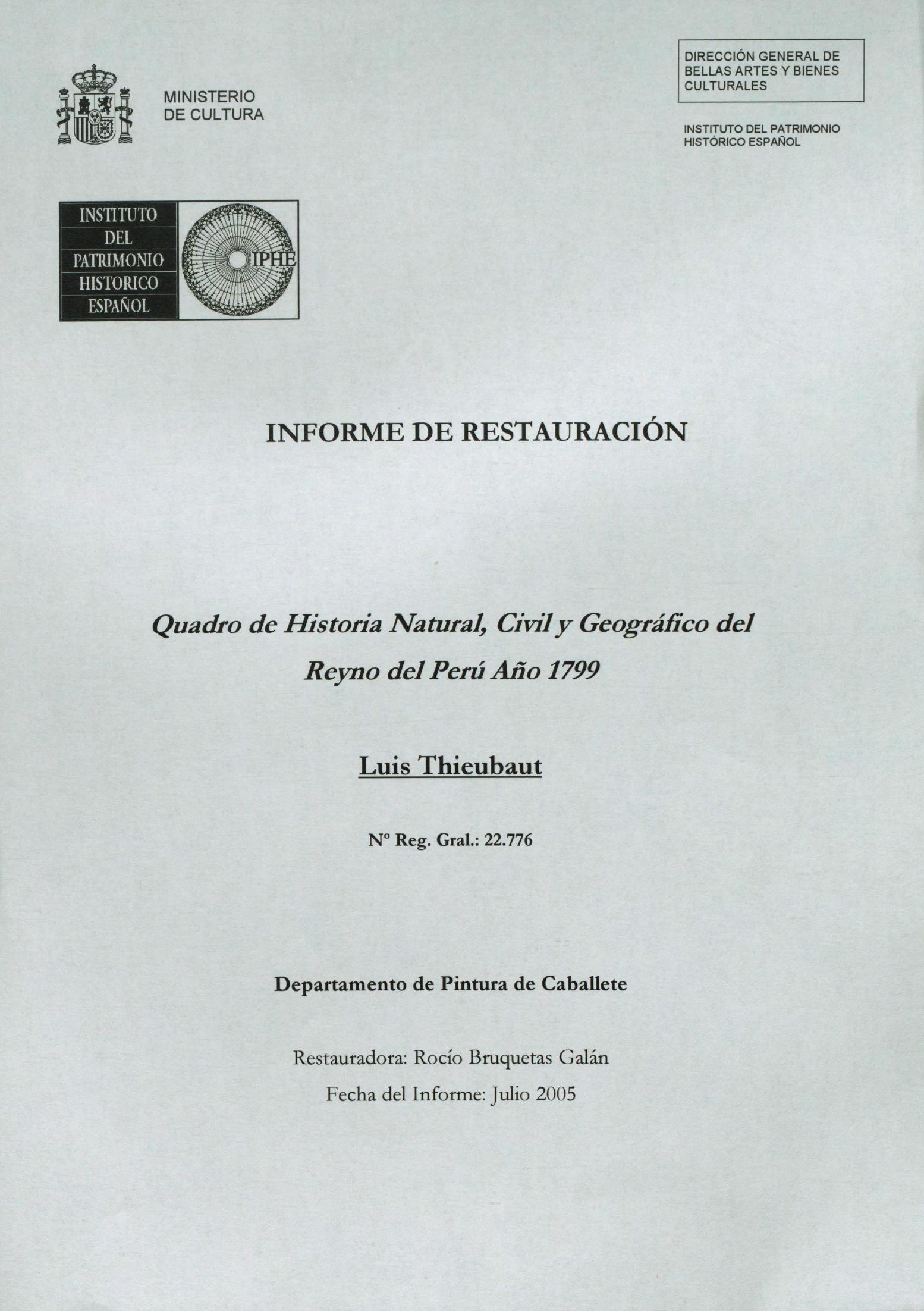 Restauración del lienzo "Quadro de Historia Natural, Civil y Geográfico del Reyno del Perú", de Luis Thieubaut, procedente del Museo Nacional de Ciencias Naturales (Madrid)