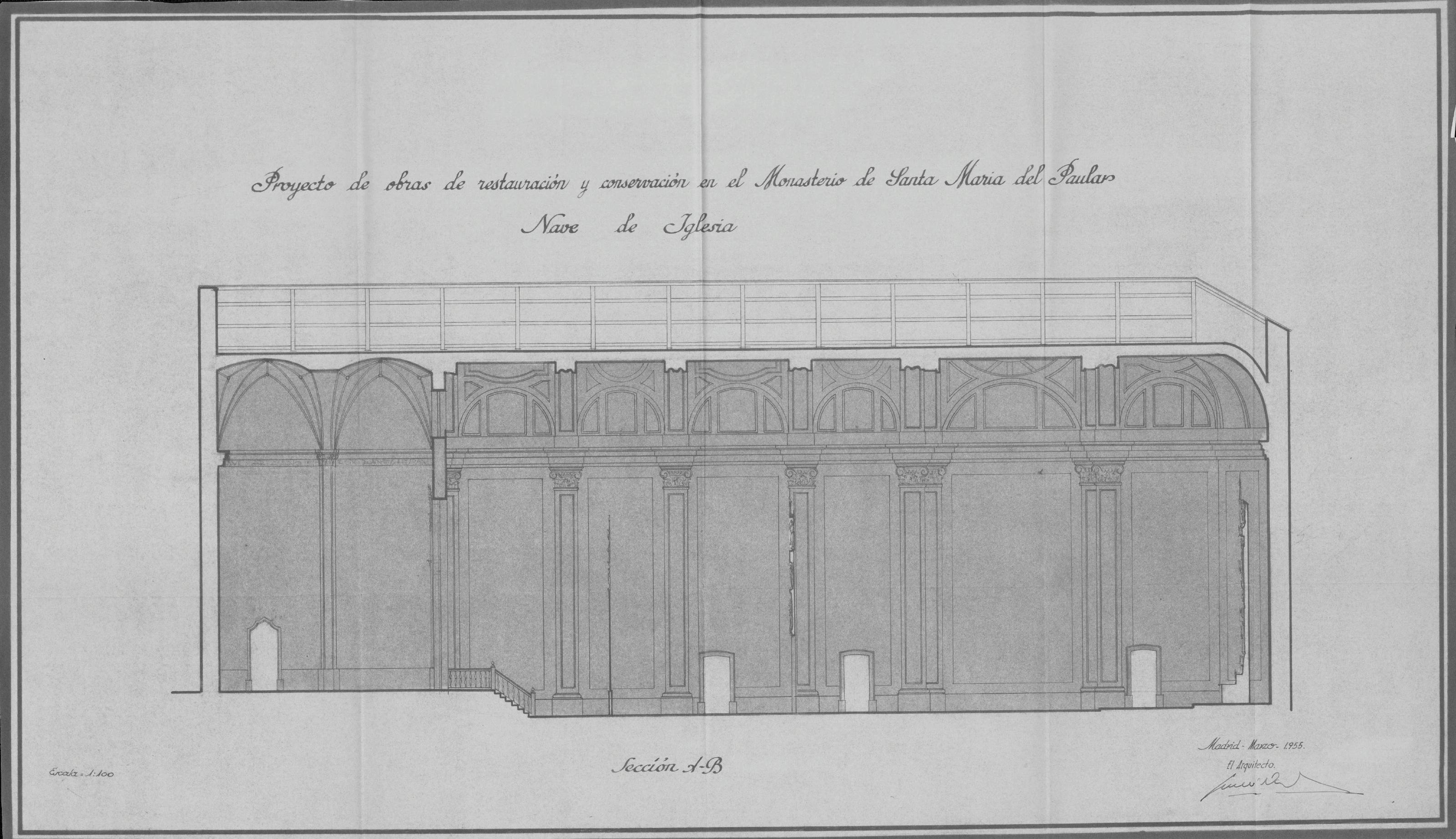 Monasterio del Paular: Monasterio de Santa María del Paular Sección Longitudinal de la Nave de la Iglesia