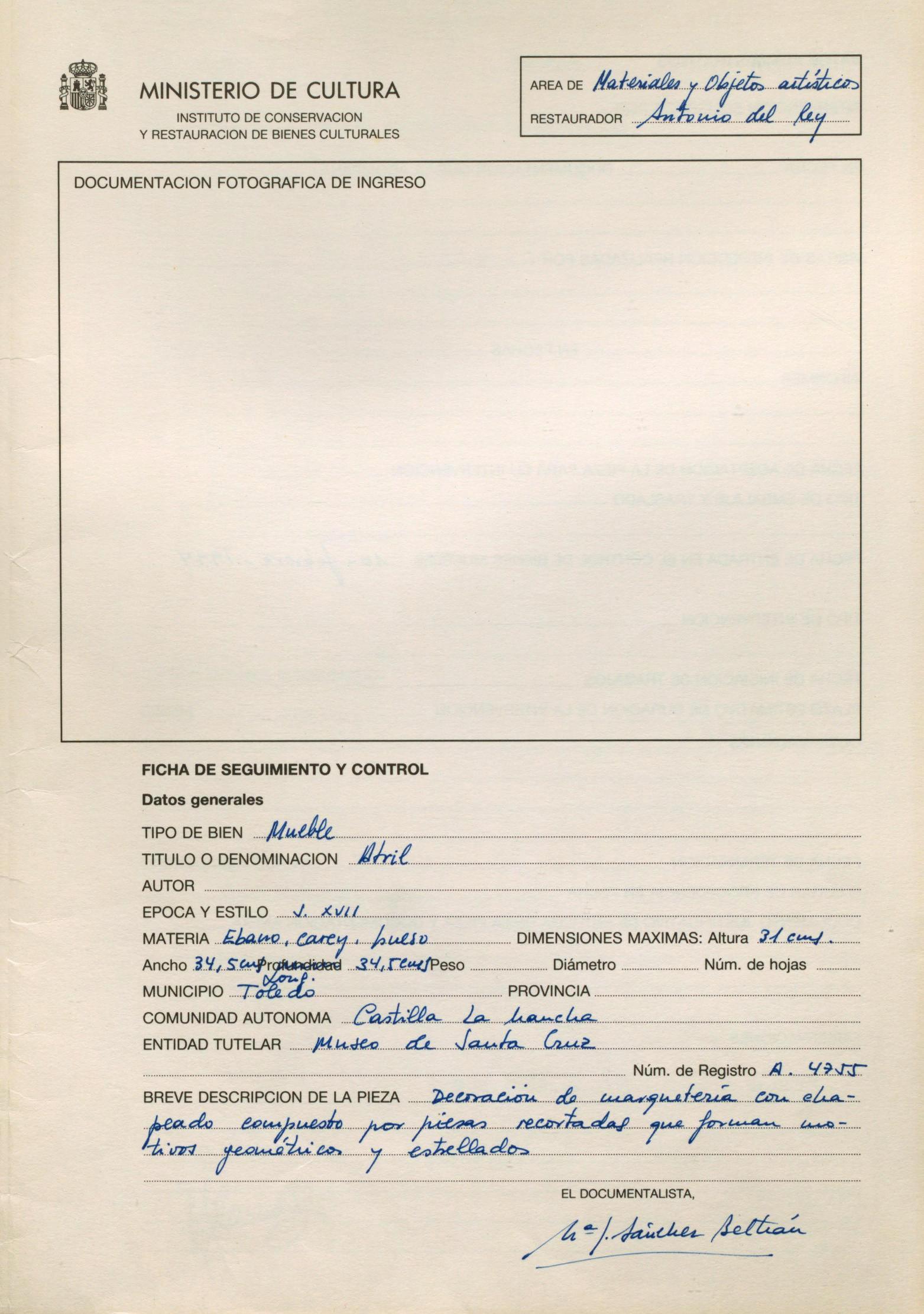 Restauración de un atril de taracena, procedente del Museo de Santa Cruz de Toledo