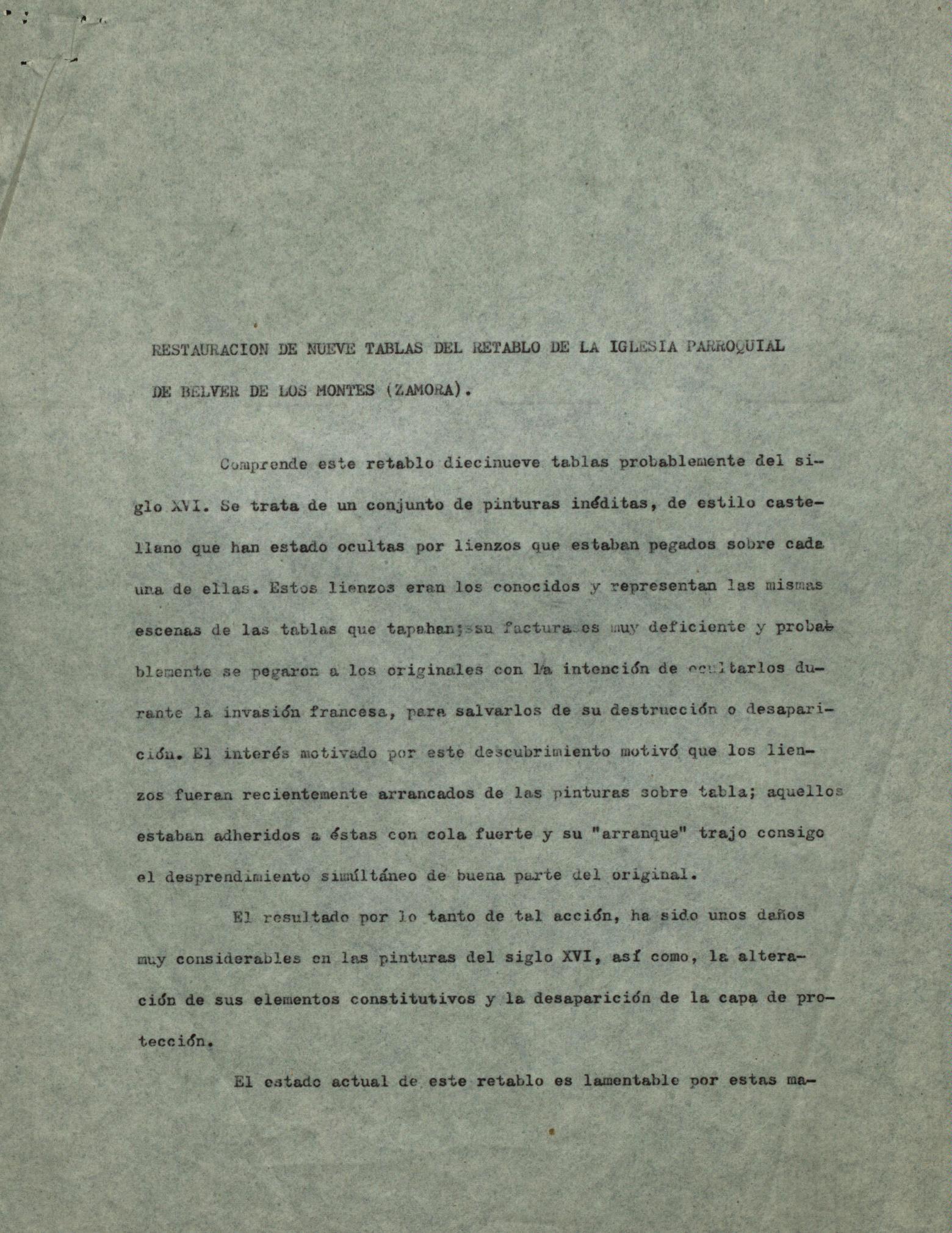 Restauración de diecinueve tablas del retablo de la Iglesia parroquial de Belver de los Montes (Zamora)