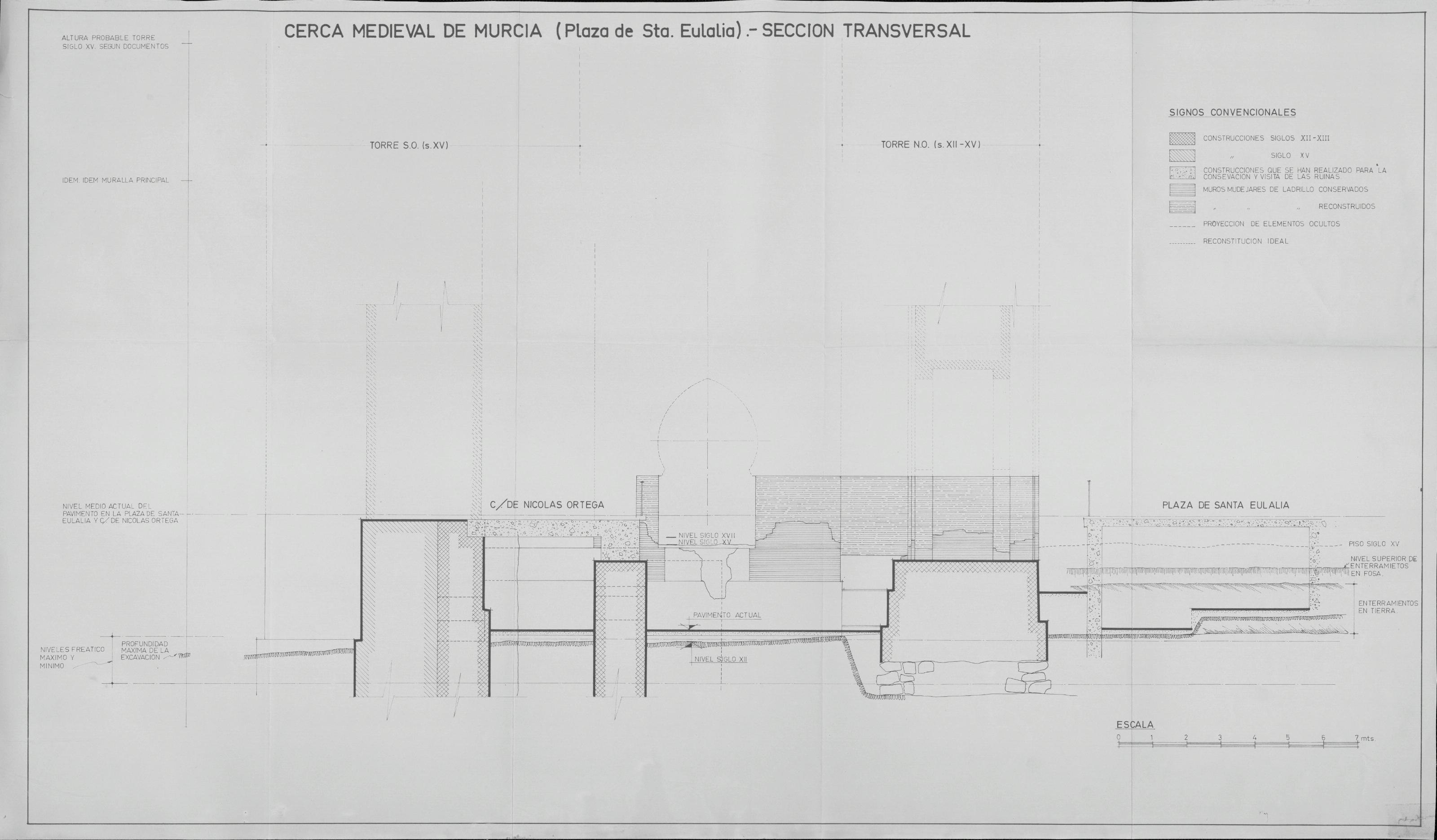 Conjunto Medieval en la Plaza de Santa Eulalia: Conjunto Medieval en la Plaza de Santa Eulalia Sección Trasversal de la cerca medieval