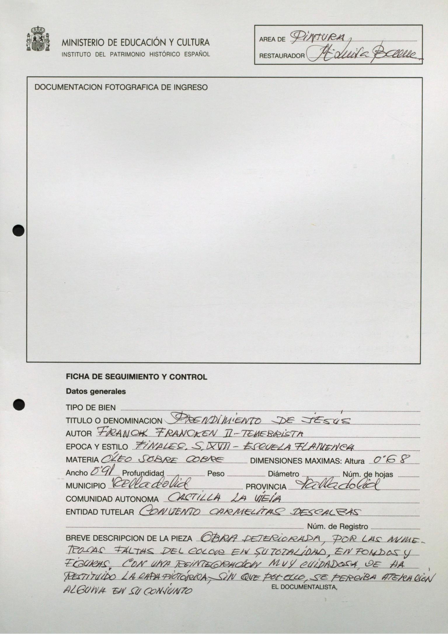 Restauración de la pintura sobre cobre "El prendimiento de Jesús", procedente del Convento de las Carmelitas de Valladolid