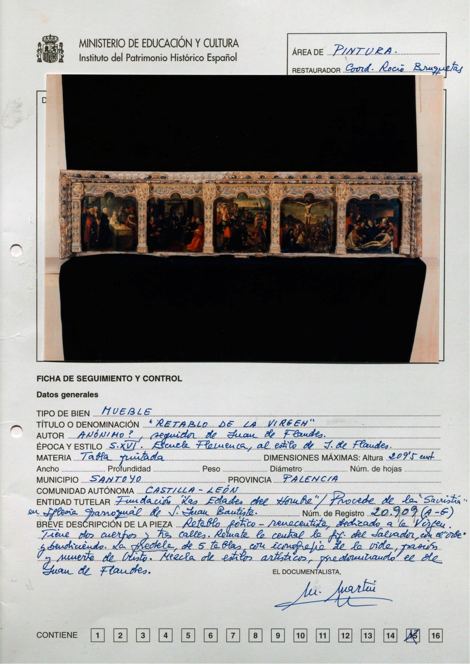 Restauración del retablo de la Virgen, de la escuela de Juan de Flandes, procedente la Iglesia parroquial de Santoyo (Palencia)