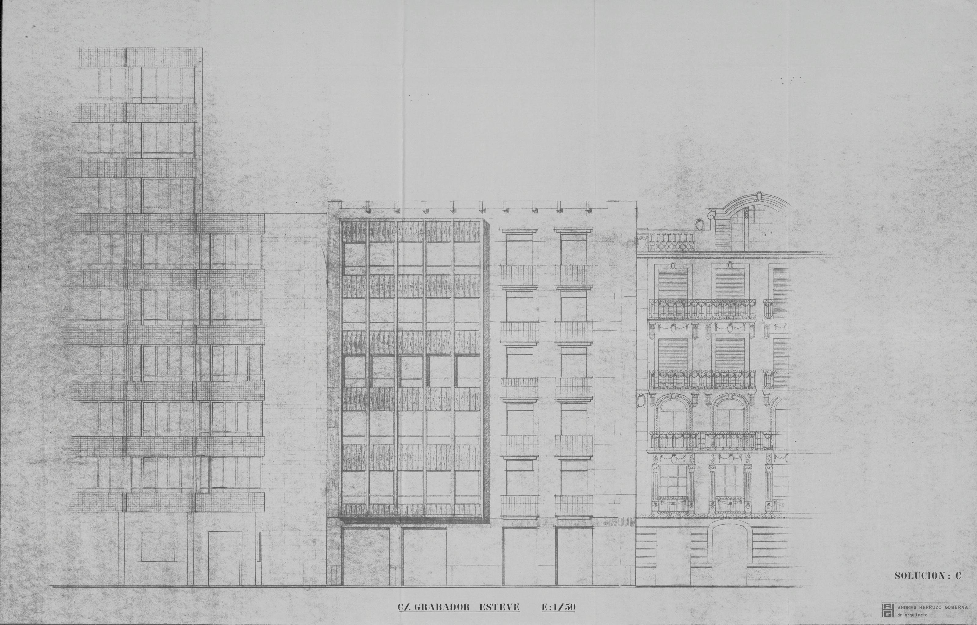 Edificio anejo al Edificio Modernista de C/ Grabador Esteve: Proyecto de contrucción de nuevo edificio Alzado - Solución C