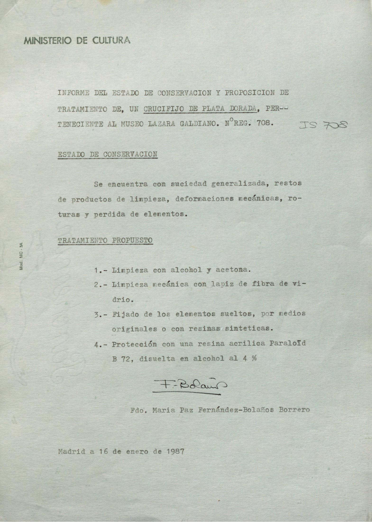 Informe de conservación de un crucifijo de plata dorada procedente de la Fundación Lázaro Galdiano (Madrid)