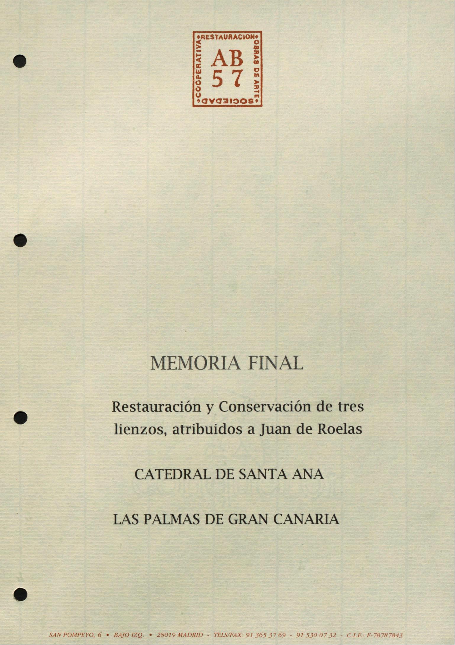 Restauración de tres lienzos, atribuidos a Juan de Roelas, de la Catedral de Santa Ana, en Las Palmas de Gran Canaria (Las Palmas)