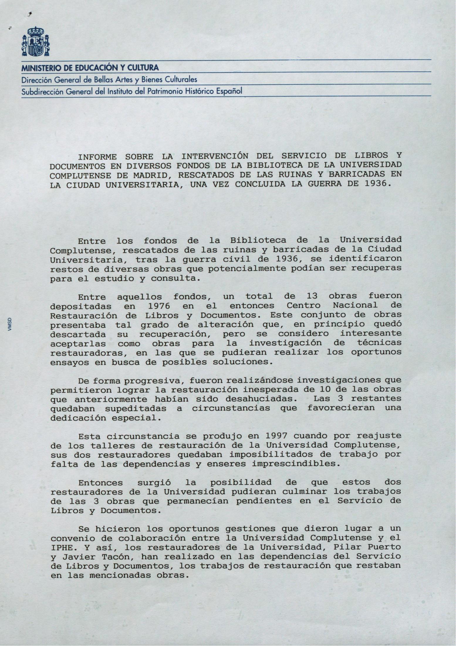 Restauración de libros y documentos de la Biblioteca de la Universidad Complutense de Madrid