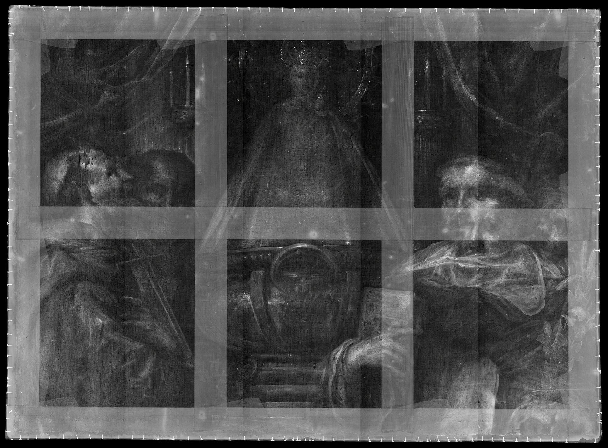 Restauración del lienzo "La virgen de Atocha adorada por San francisco y Santo Domingo de Guzmán", de Andrés Schmidt, procedente del Museo Lázaro Galdiano (Madrid)