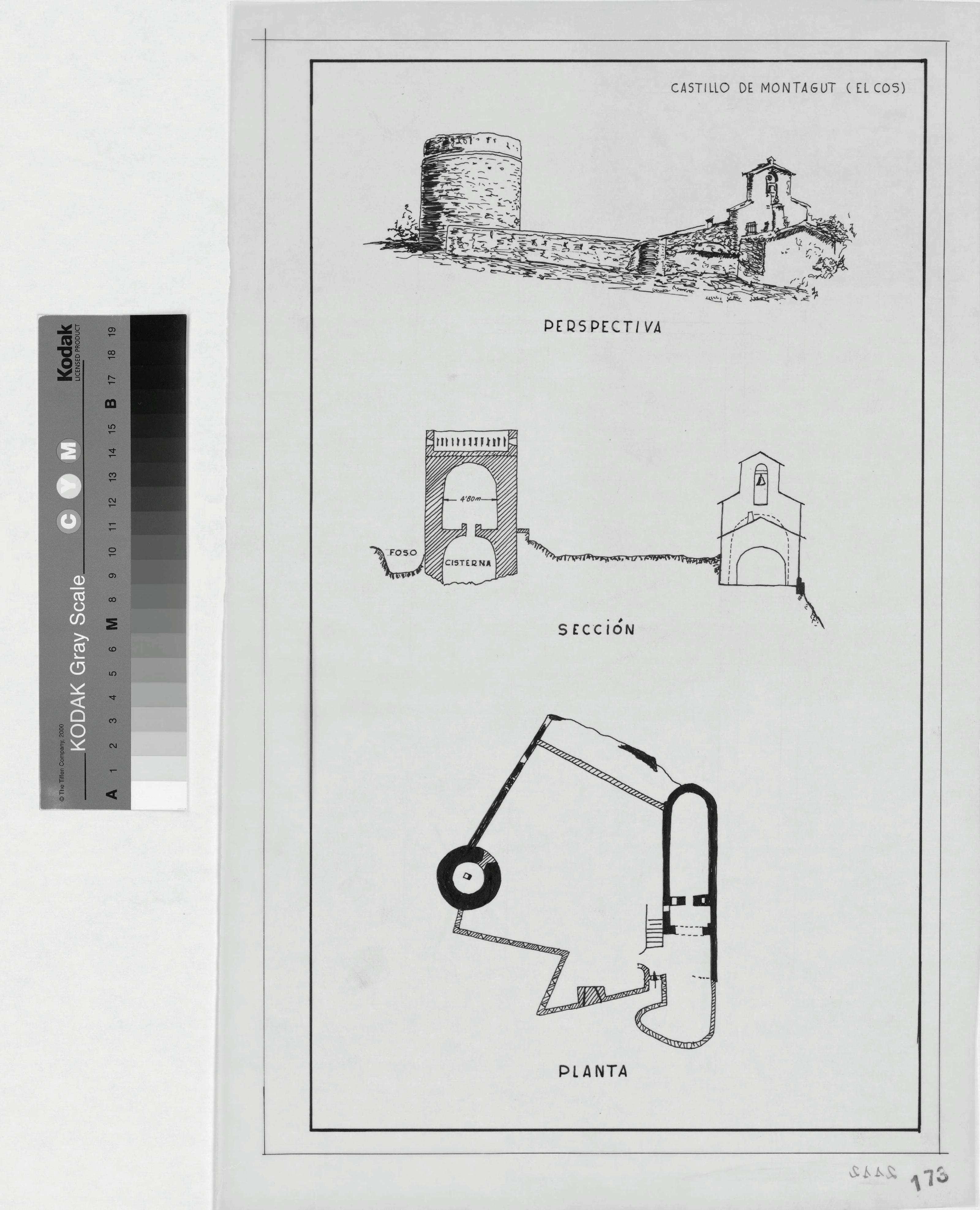 CASTILLO DE MONTAGUT: ALZADO, SECCION Y PLANTA