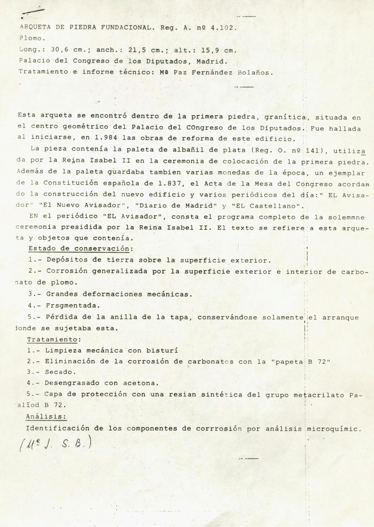 Restauración de una arqueta de plomo y un jarrón de porcelana procedentes del Congreso de los Diputados (Madrid)
