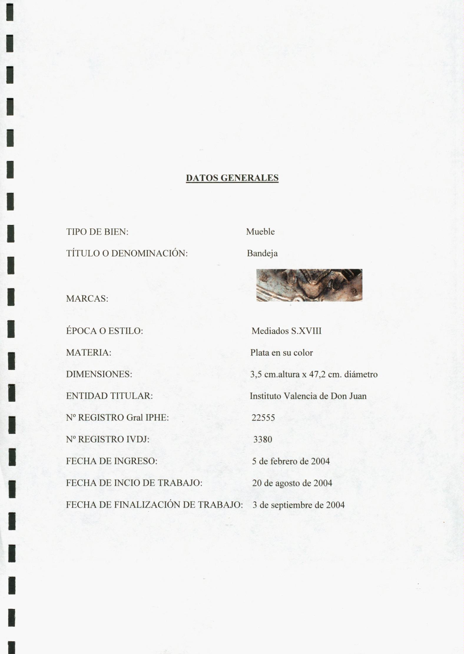 Restauración de cuatro bandejas de plata del siglo XVIII, procedentes del Instituto Valencia de Don Juan de Madrid