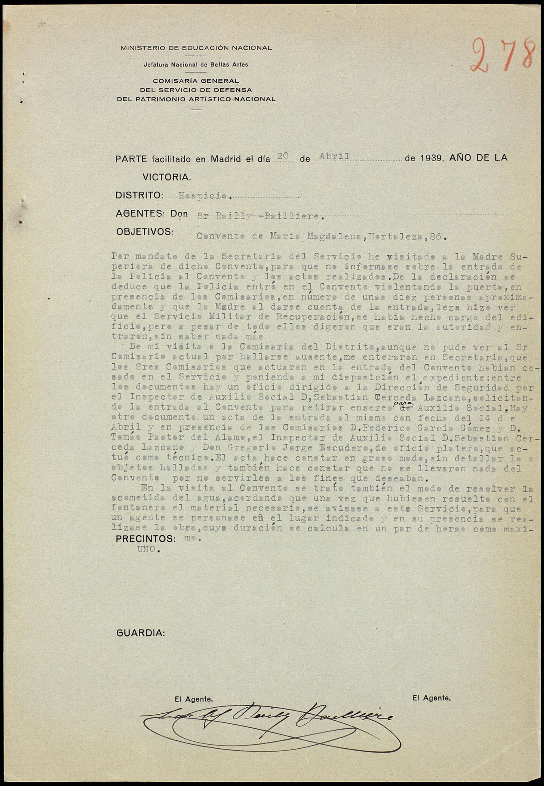Visitas realizadas por los agentes al Convento de María Magdalena